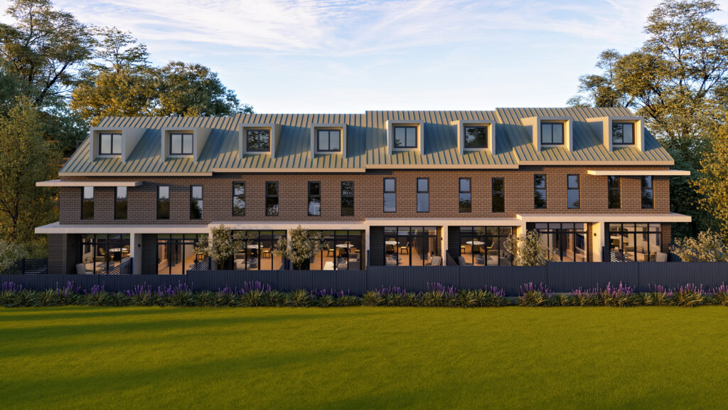 Mildred Hornsby blends indoor and outdoor living with open layouts, communal spaces, and lush greenery. Sustainable designs include native plants and energy-efficient features. Spacious interiors, large windows, and passive solar design maximise light and comfort. Each townhouse offers a seamless flow between living areas, courtyards, and shared spaces, combining comfort with sustainability.